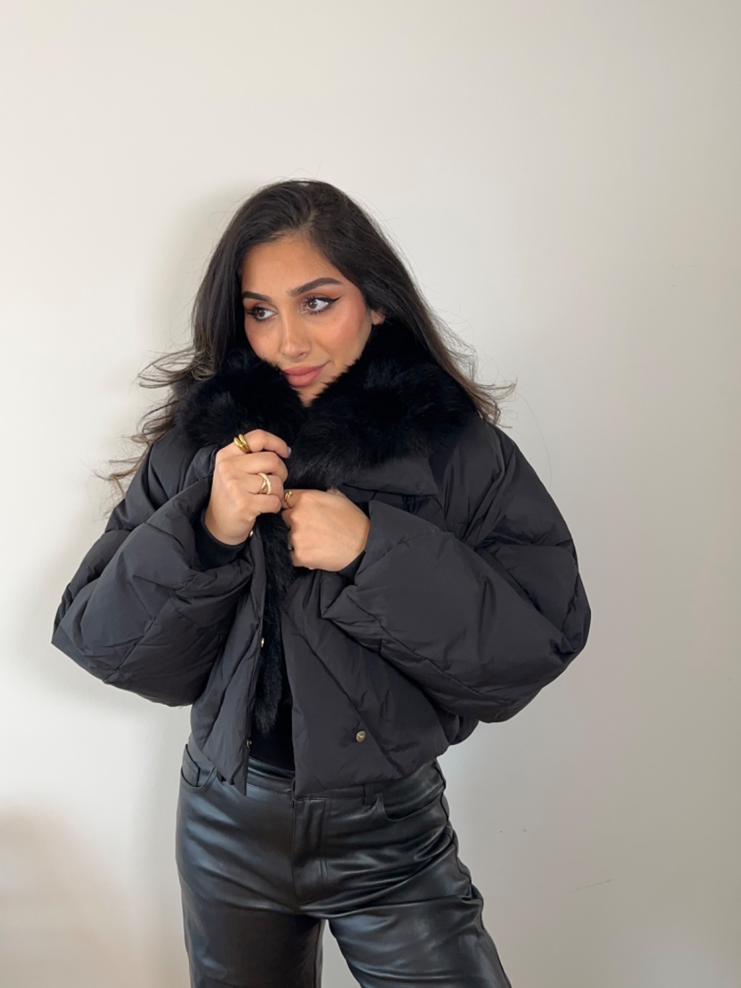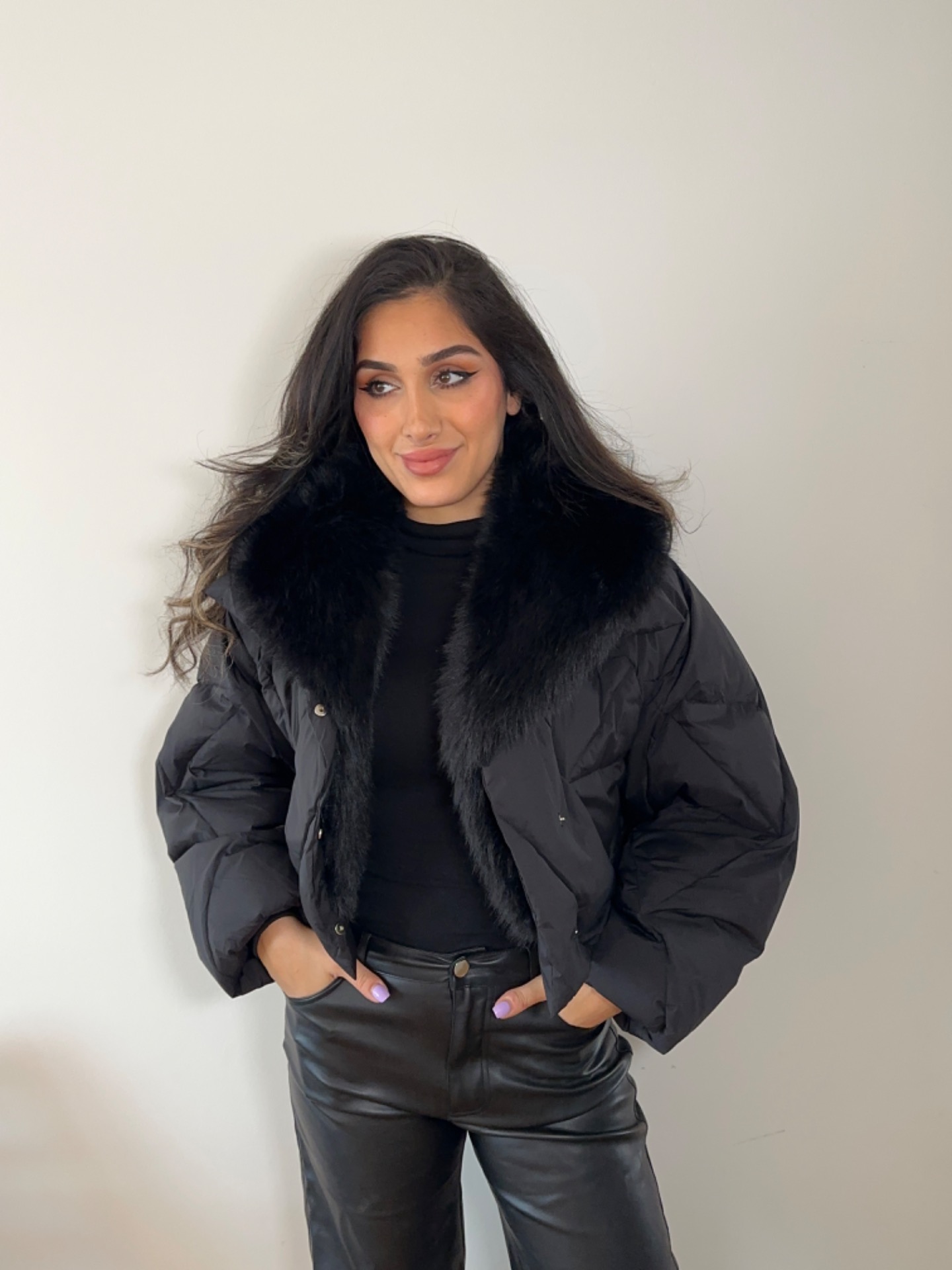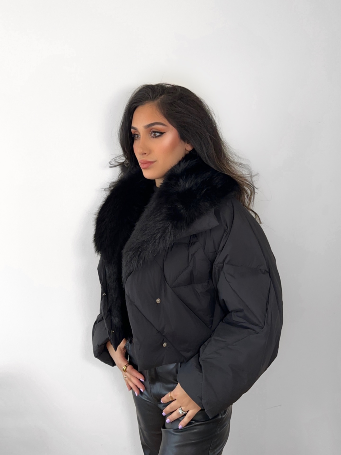 En trendy dunjakke med pels der kombinerer stil og funktionalitet på en luksuriøs måde. Jakken er fyldt med let og varm dun, der sikrer komfort på kolde dage uden at føles tung.